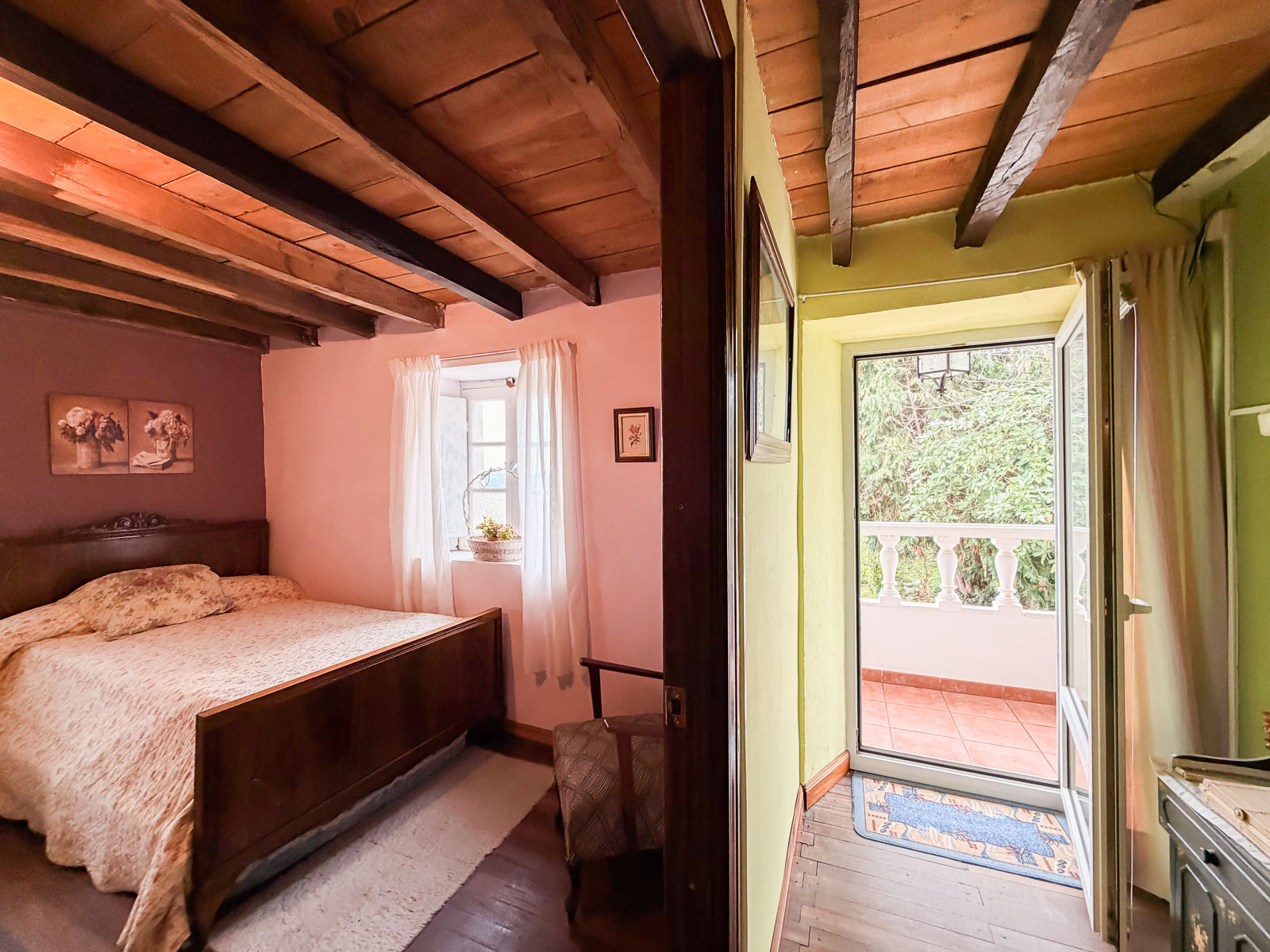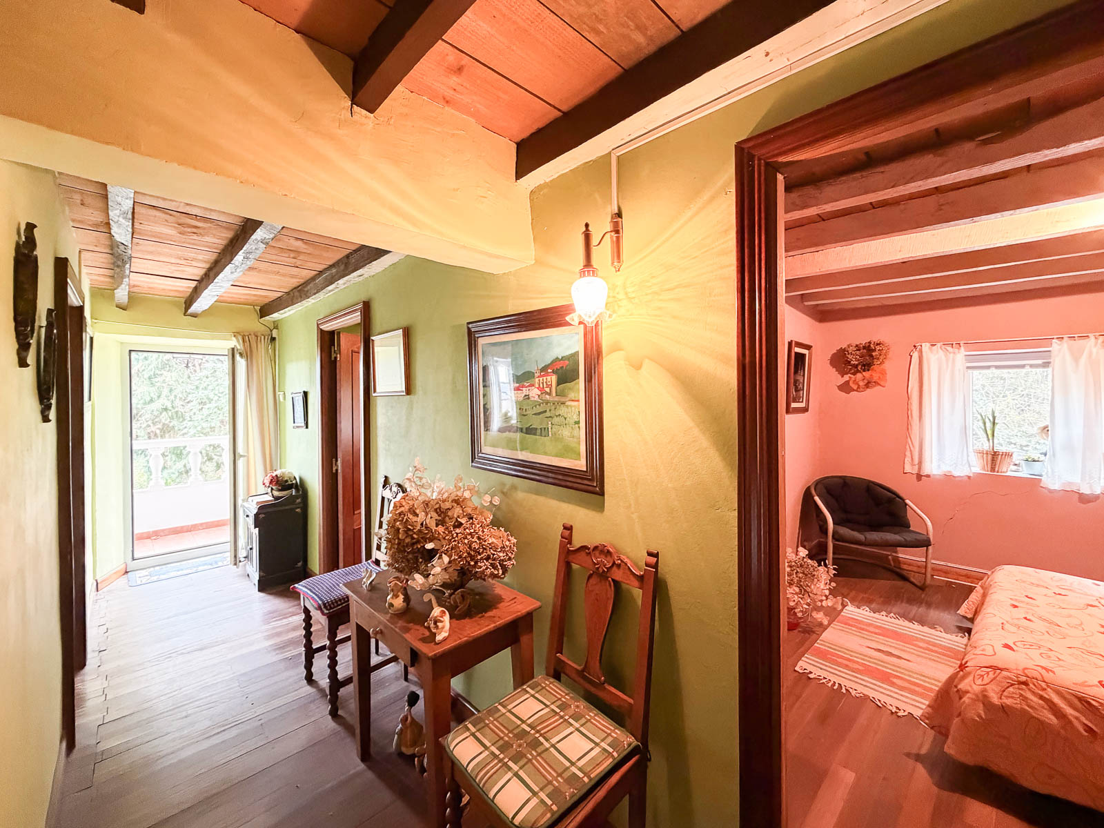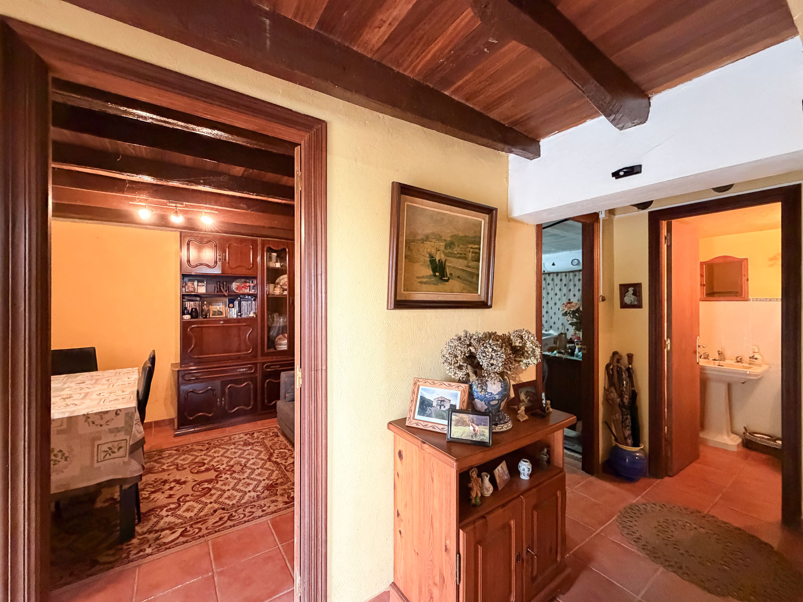 Dentro del silencio y tranquilidad de esta casa, subimos por la escalera, amplia con vistas al mar, y nos encontramos a la derecha un baño reformado y el inicio de la obra de esta zona que corrsponde al espacio de la cuadra y por otro lado, a mano izquierda, tres dormitorios amplios y salida al balcón orientado al este con unas vistas espectaculares del valle y del mar.