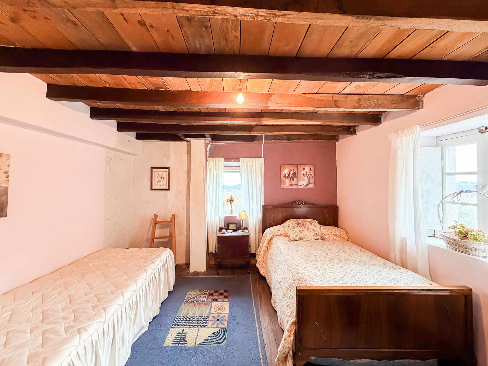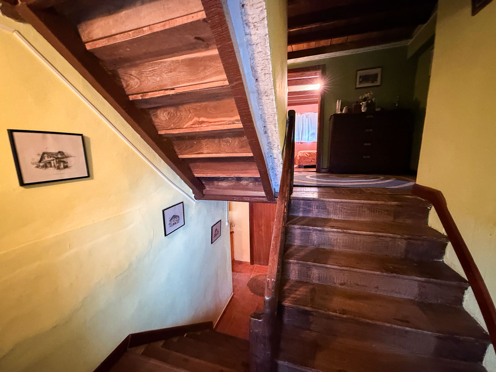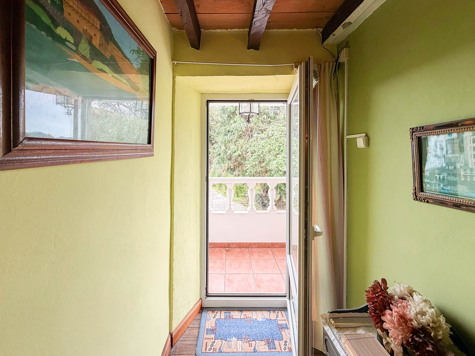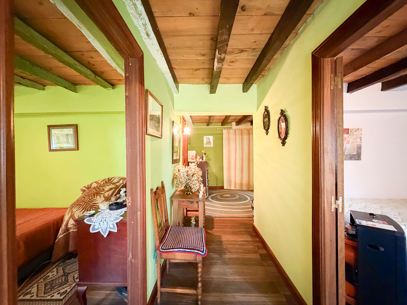 Dentro del silencio y tranquilidad de esta casa, subimos por la escalera, amplia con vistas al mar, y nos encontramos a la derecha un baño reformado y el inicio de la obra de esta zona que corrsponde al espacio de la cuadra y por otro lado, a mano izquierda, tres dormitorios amplios y salida al balcón orientado al este con unas vistas espectaculares del valle y del mar.