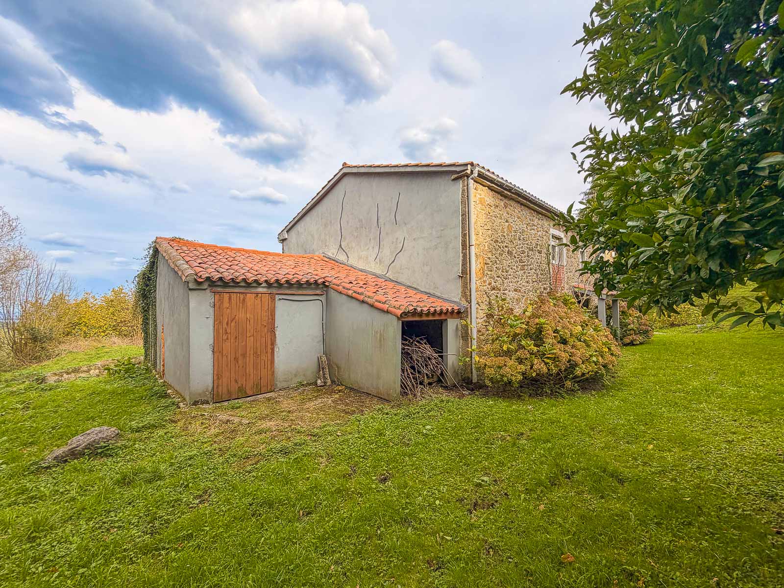 Tiene zona de garaje, leñera y una construcción de aperos.